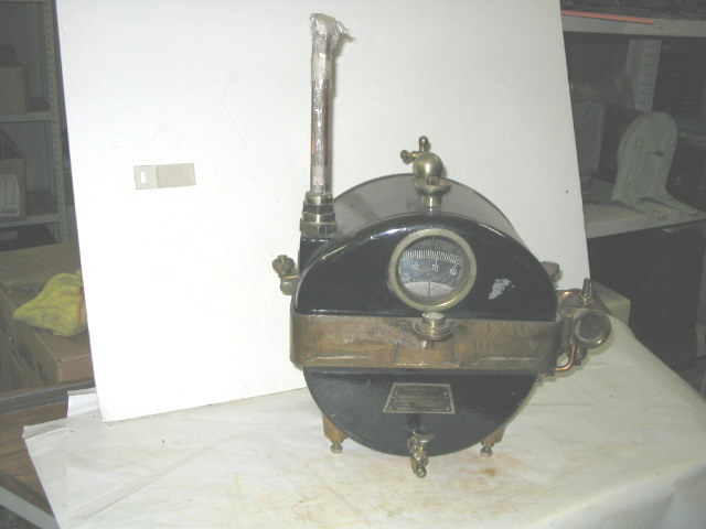 Description: Compteur sec. Son principe est basé sur la capacité mesurante de soufflets alternativement remplis et vidés. Le mouvement oscillatoire des parois est transmis à des cadrans de mesure qui enregistrent ainsi les quantités de gaz traversant l'appareil. Métal. Gris.